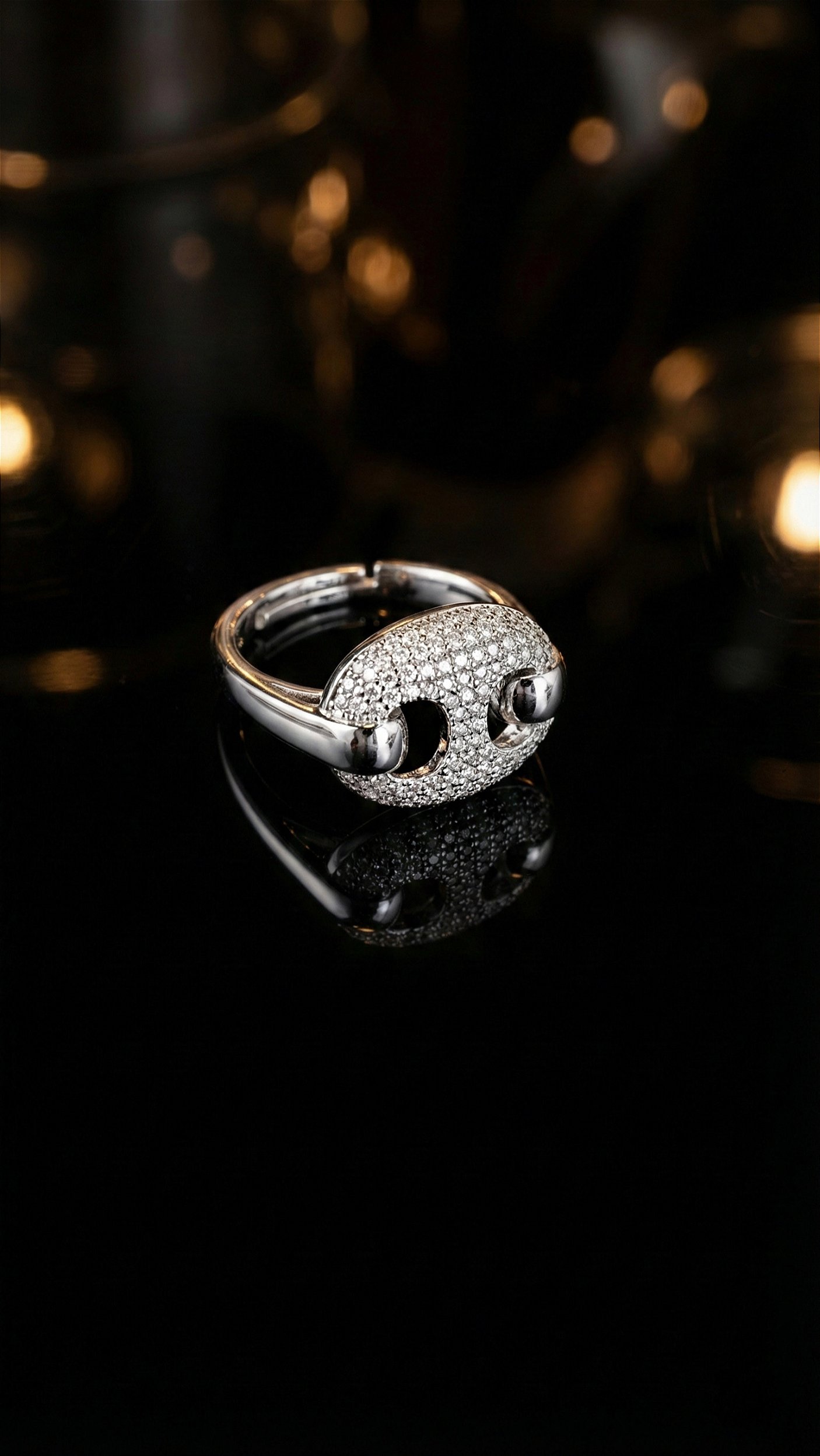 Anel Elo Insp Gucci Cravejado Prata Ajustável