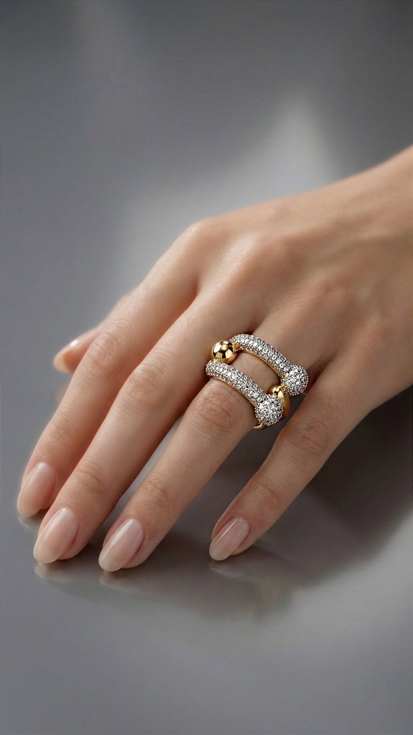 Material e Qualidade: Nossas peças são banhadas a Ouro 18k ou Ródio Branco e finalizadas com um verniz especial que protege e aumenta a durabilidade. Design inspirado em grandes marcas de Luxo, trazem a sofisticação icônica e a elegância atemporal para os acessórios. O anel é ajustável!