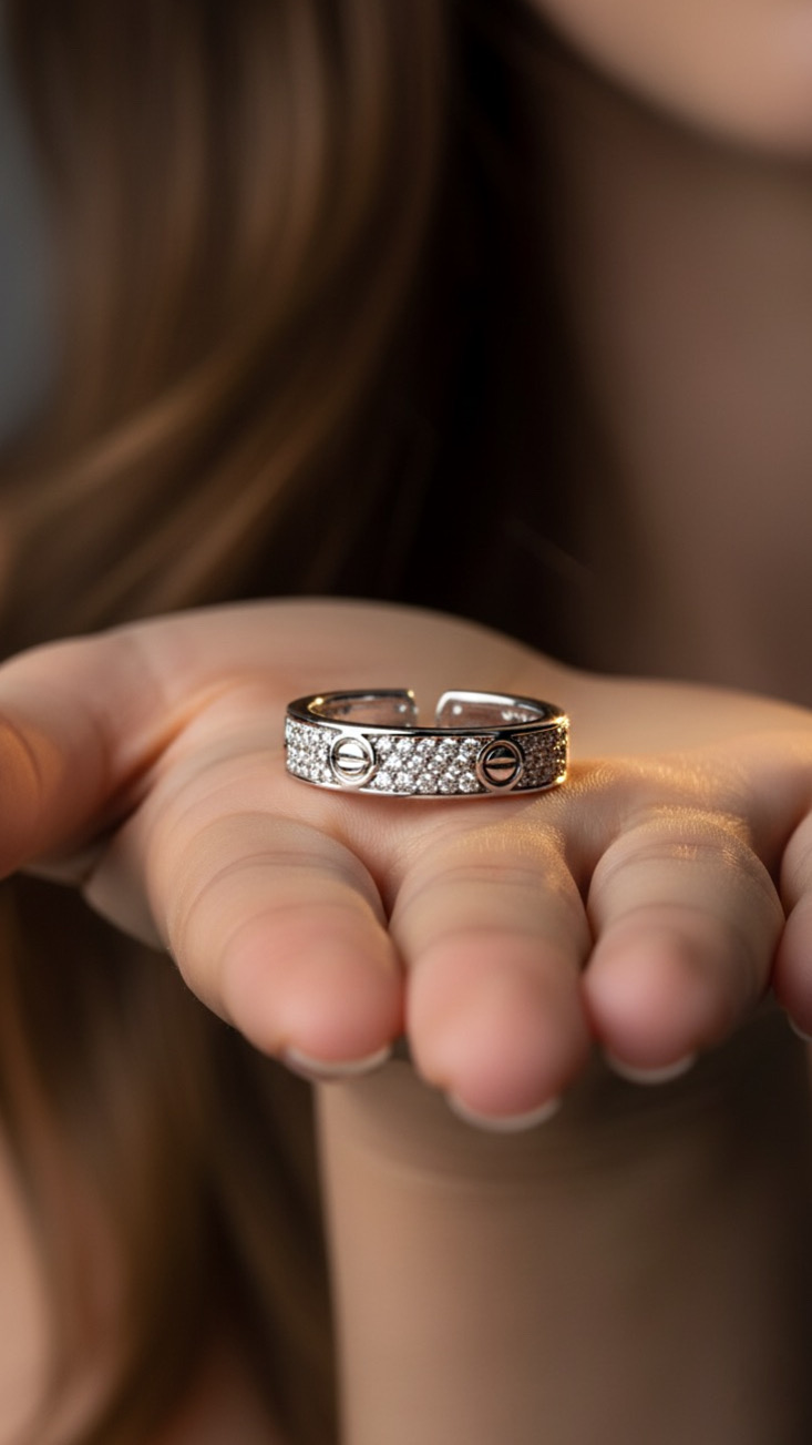 Anel Insp Cartier Cravejado Zircônias Prata Ajustável
