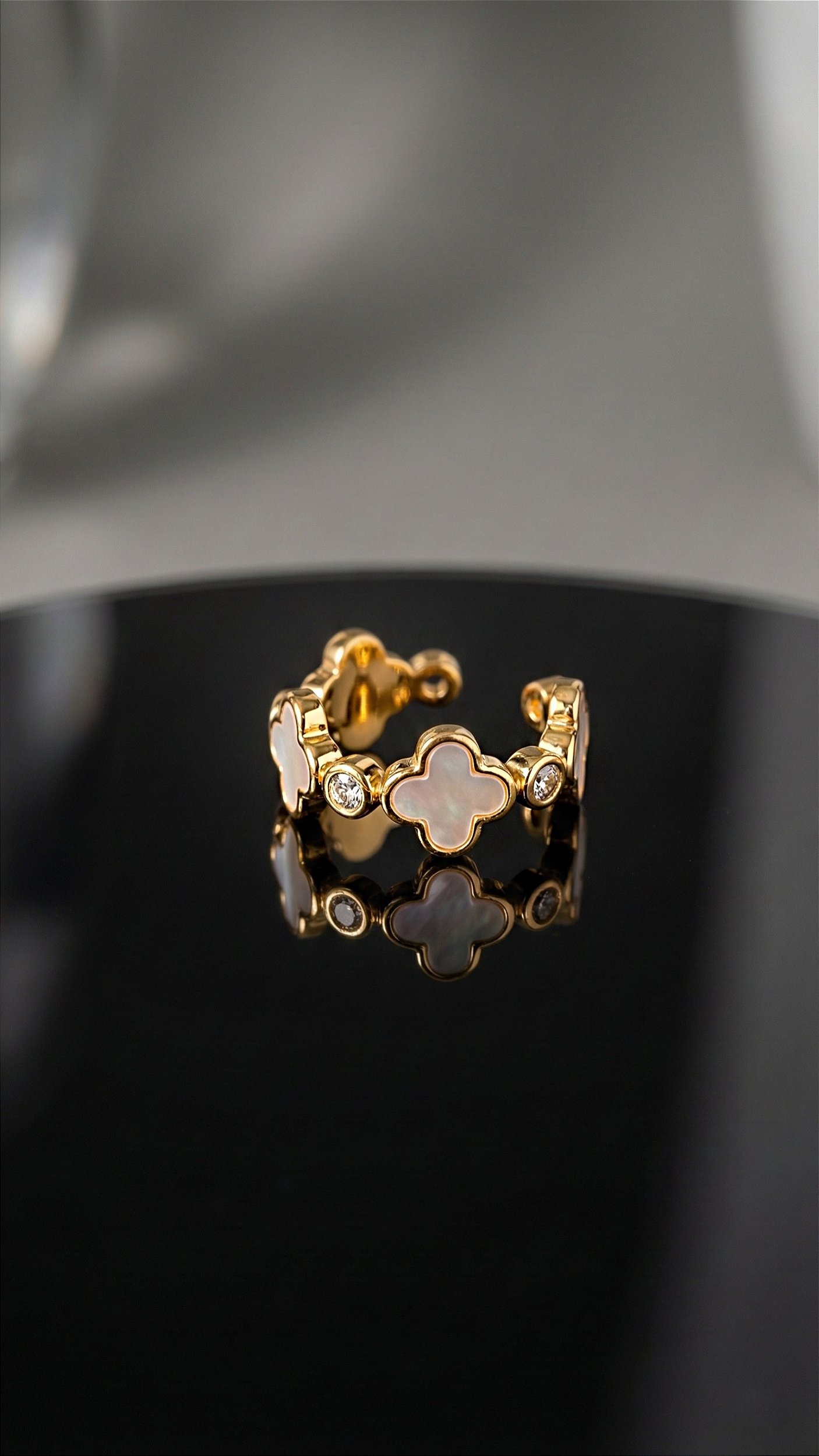 Material e Qualidade: Nossas peças são banhadas a Ouro 18k ou Ródio Branco e finalizadas com um verniz especial que protege e aumenta a durabilidade. O anel é ajustável.