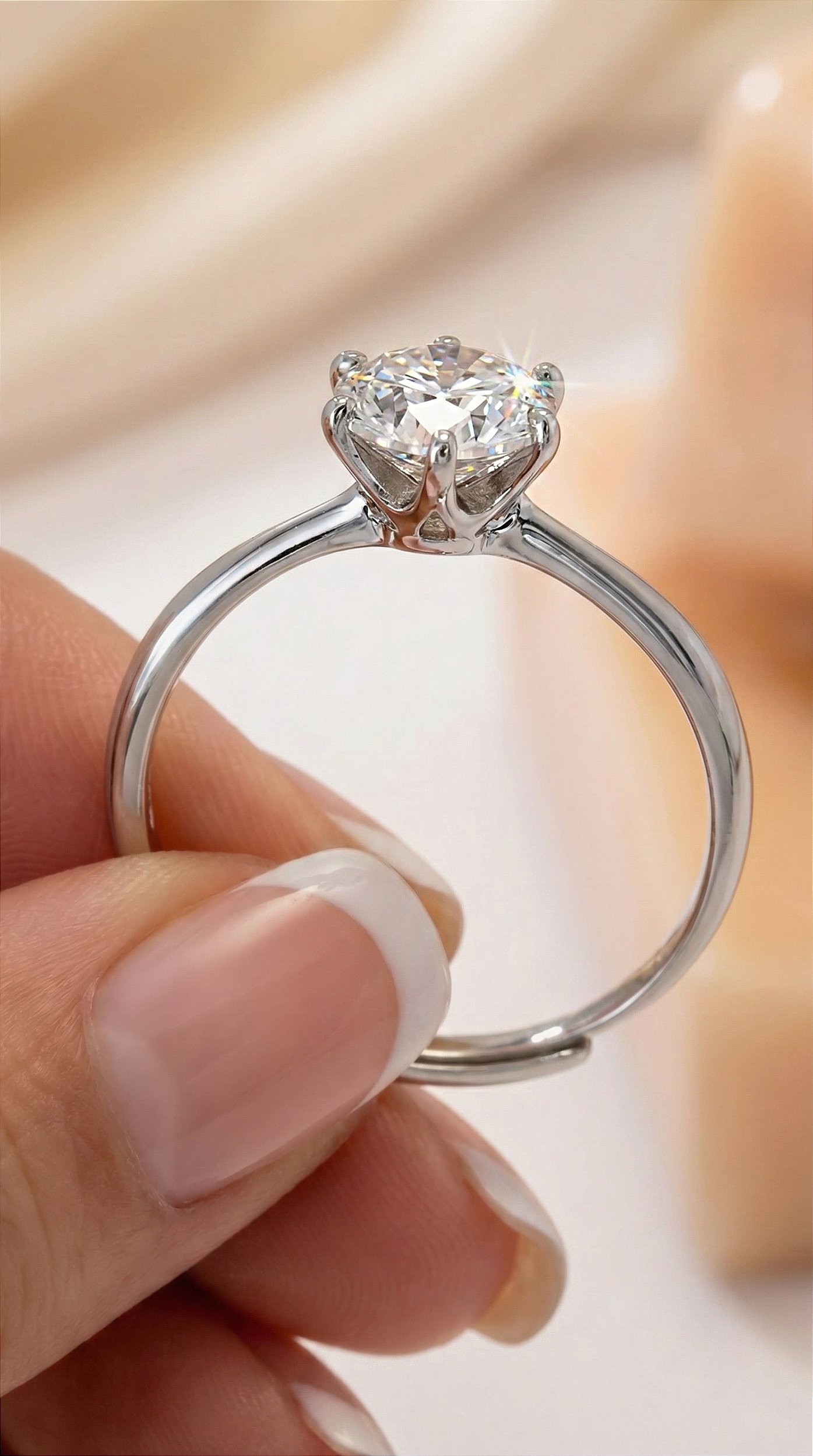 Material e Qualidade: Clássico da joalheria, anel Ponto de Luz pedra Moissanite em Prata 925. Ajustável à qualquer tamanho.