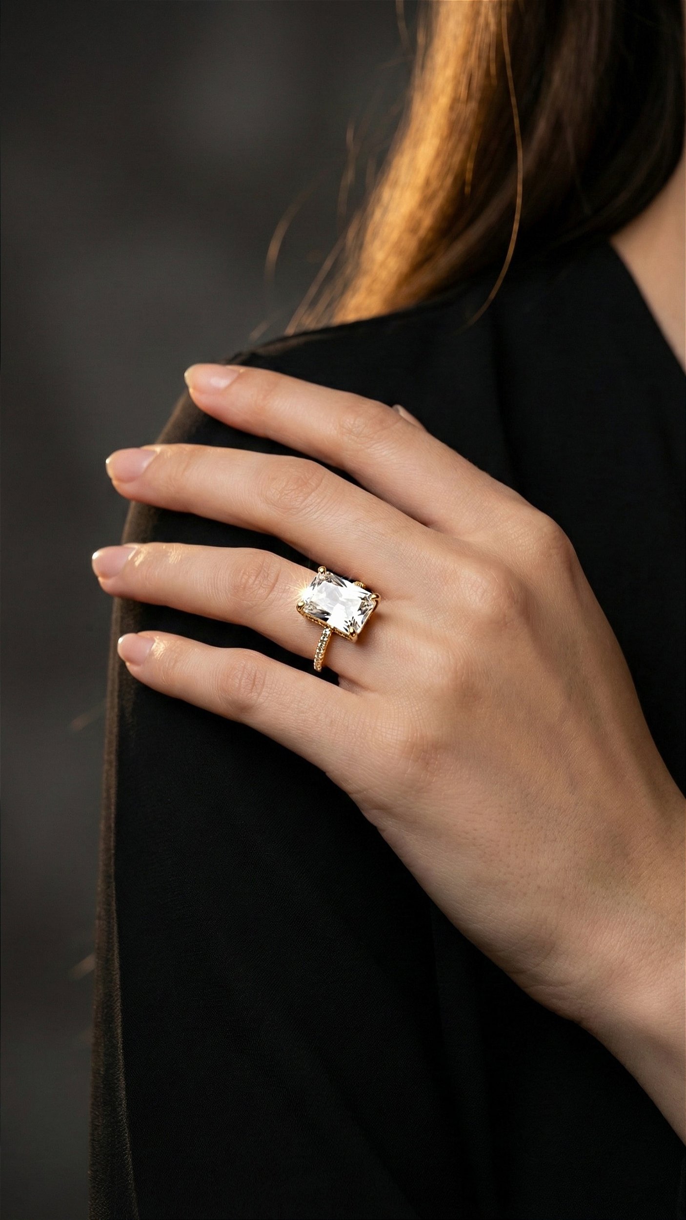 Material e Qualidade: Nossas peças são banhadas a Ouro 18k ou Ródio Branco e finalizadas com um verniz especial que protege e aumenta a durabilidade. O anel possuí ajuste!