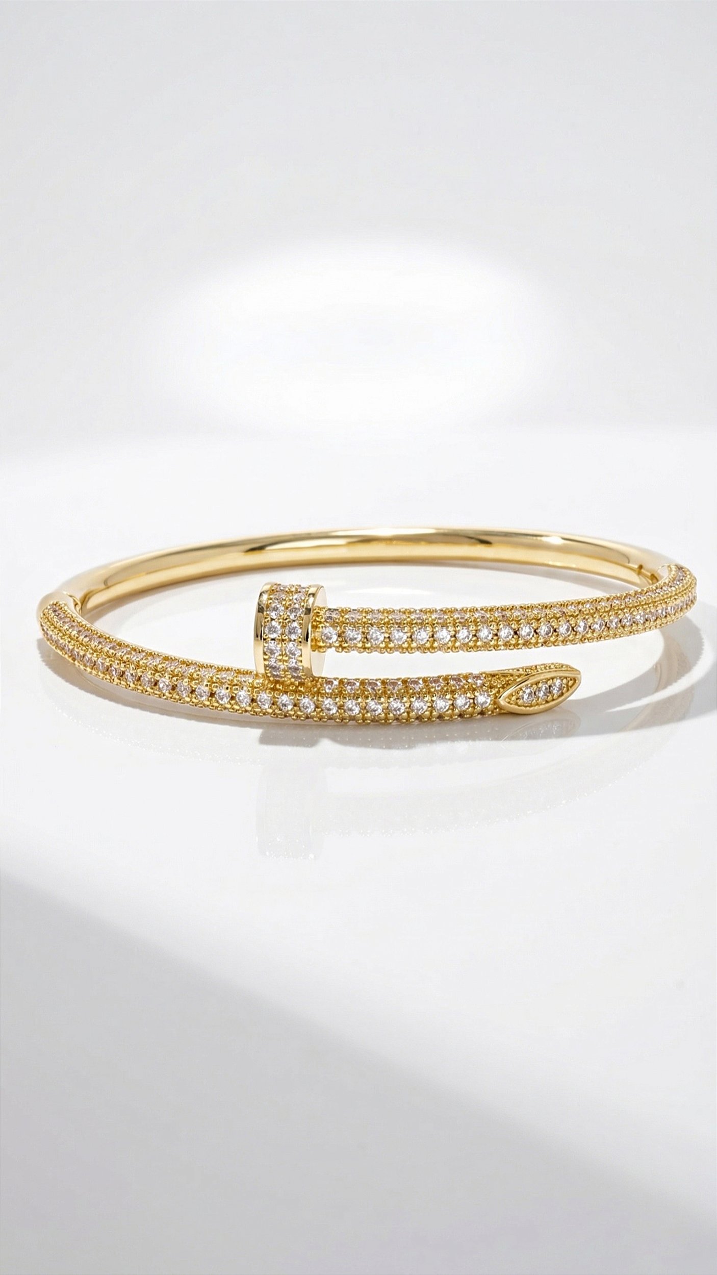 Bracelete Prego Insp Cartier Prego Médio Cravejado Dourado