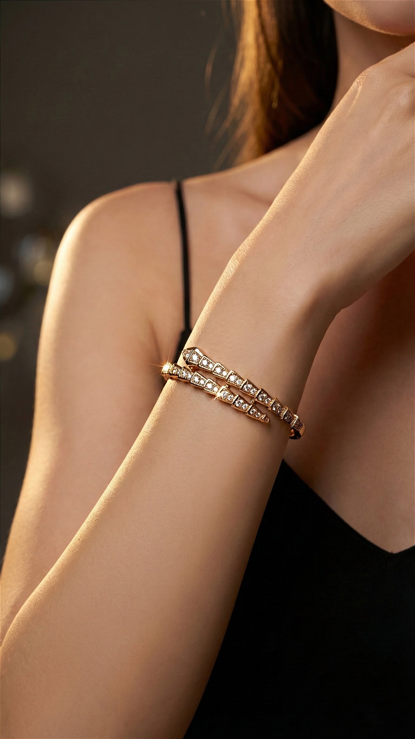 Bracelete Serpente Insp Bulgari Zircônia Dourado
