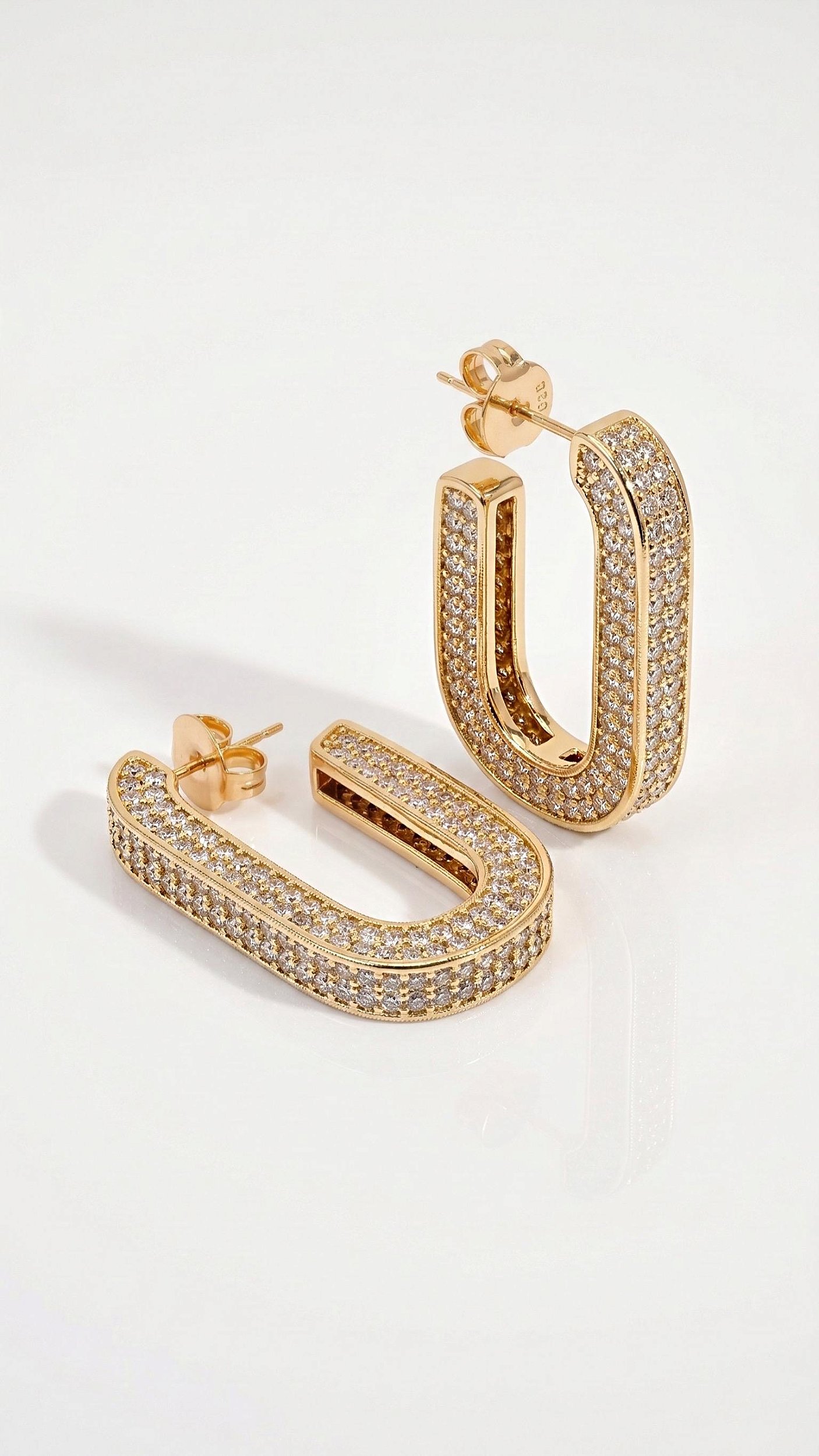 Brinco Argola Retangular Gravejada Zircõnias Dourada