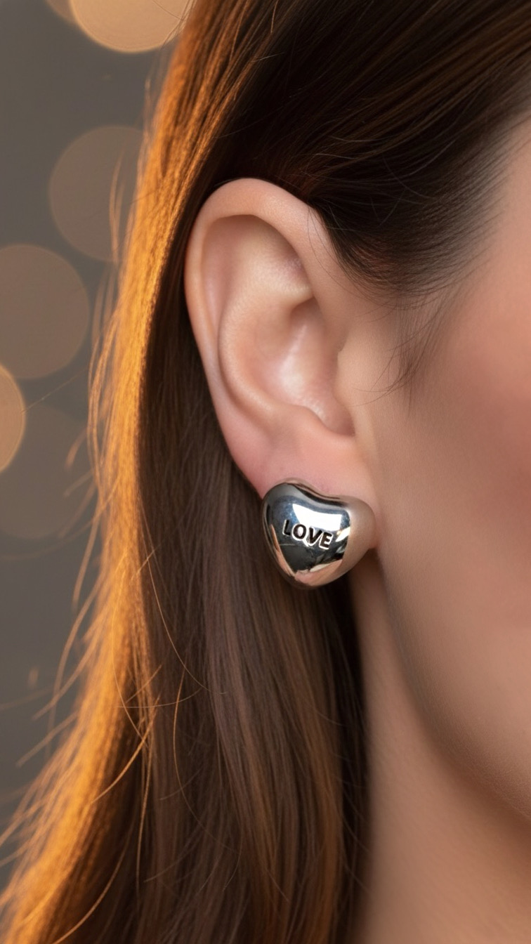 Brinco Coração Folheado Love Prata