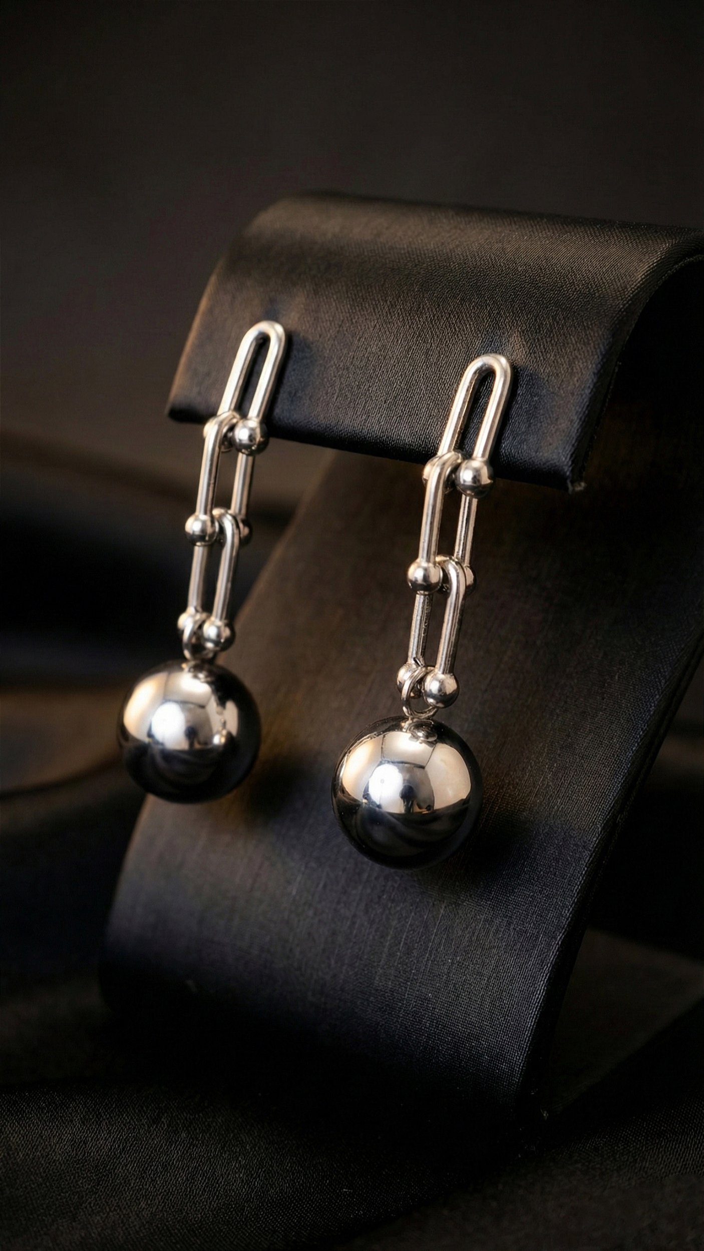 Brinco Elos Insp Tiffany Esfera Pendurado Aço Prata
