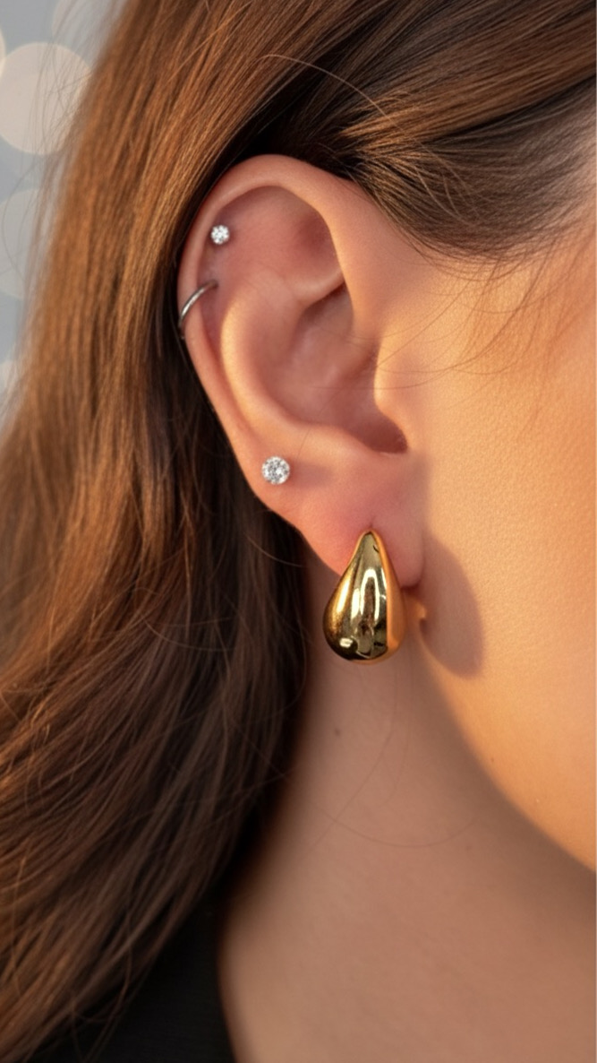 Brinco Mini Gota Dourada Aço