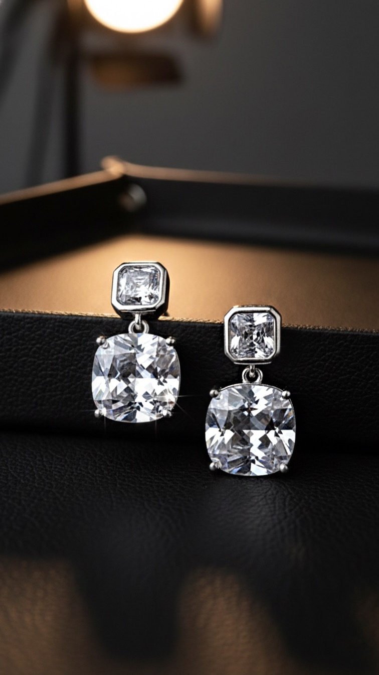 Brinco Mini Pendurado Quadrado Zircônia Prata