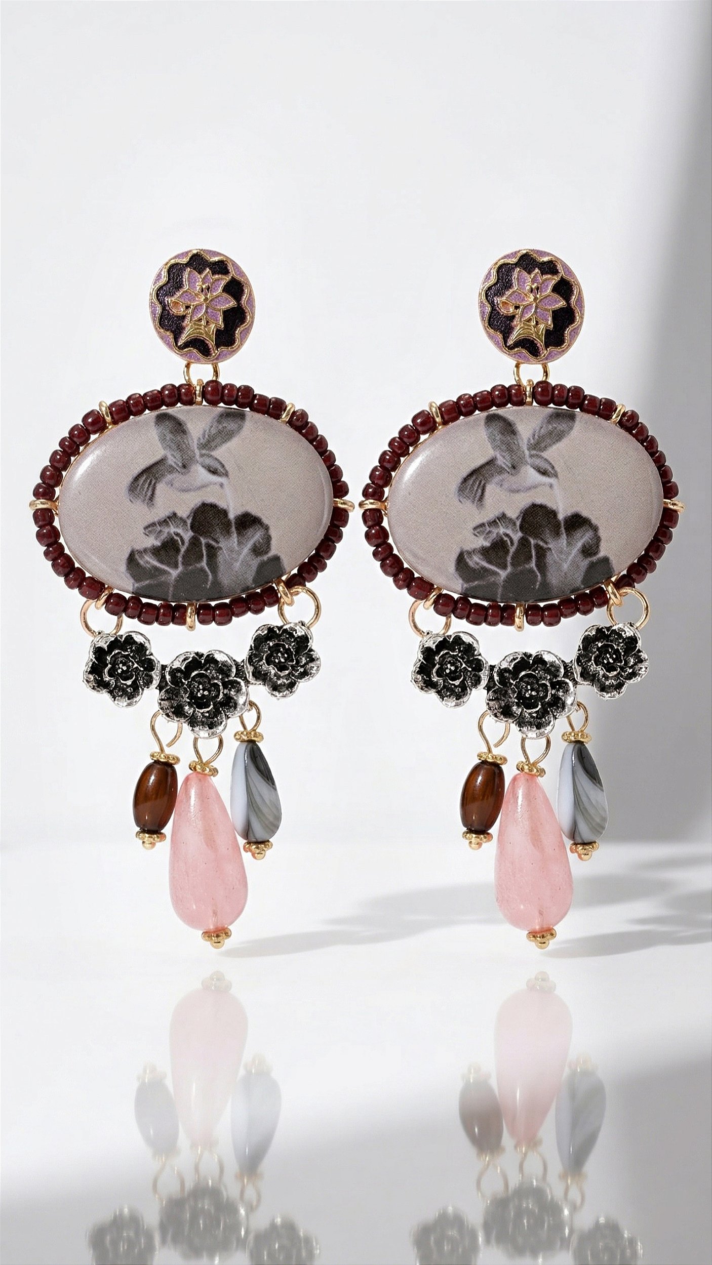 Além disso a peça possuí miçangas e resina, que trazem sofisticação para o acessório.