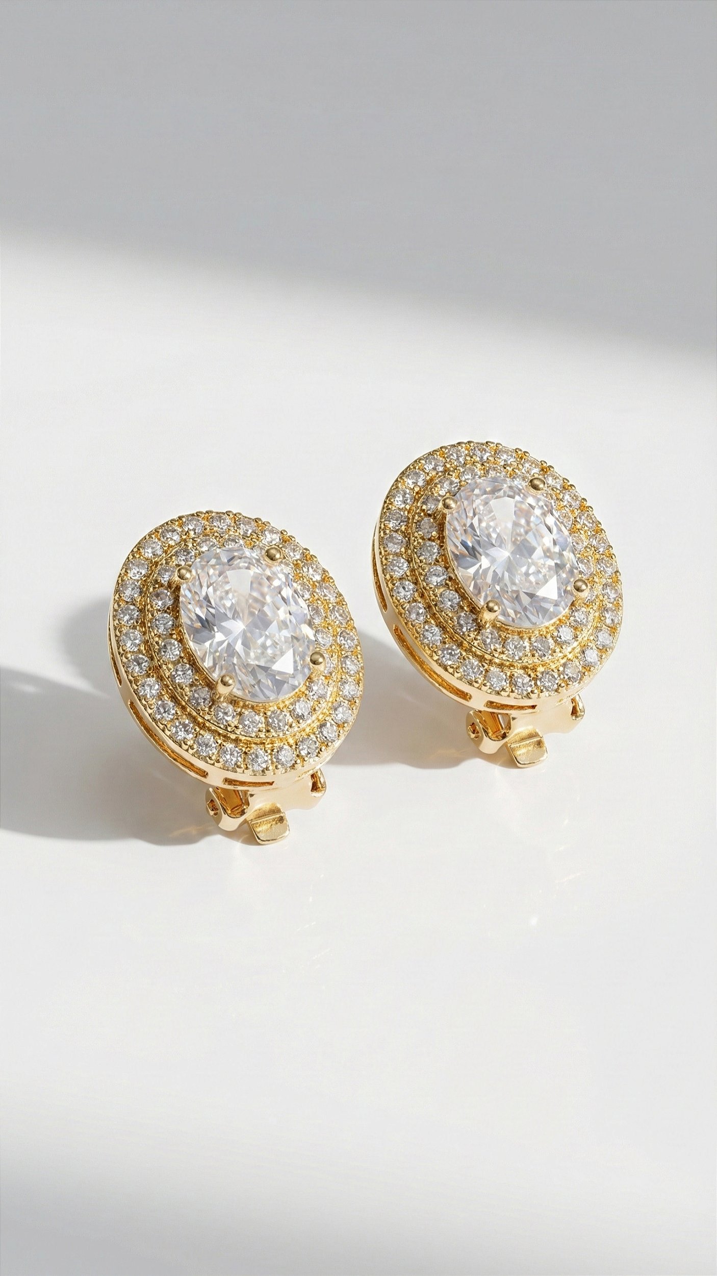 Brinco Pressão Redondo Zircônia Cristal Cravejado Dourado