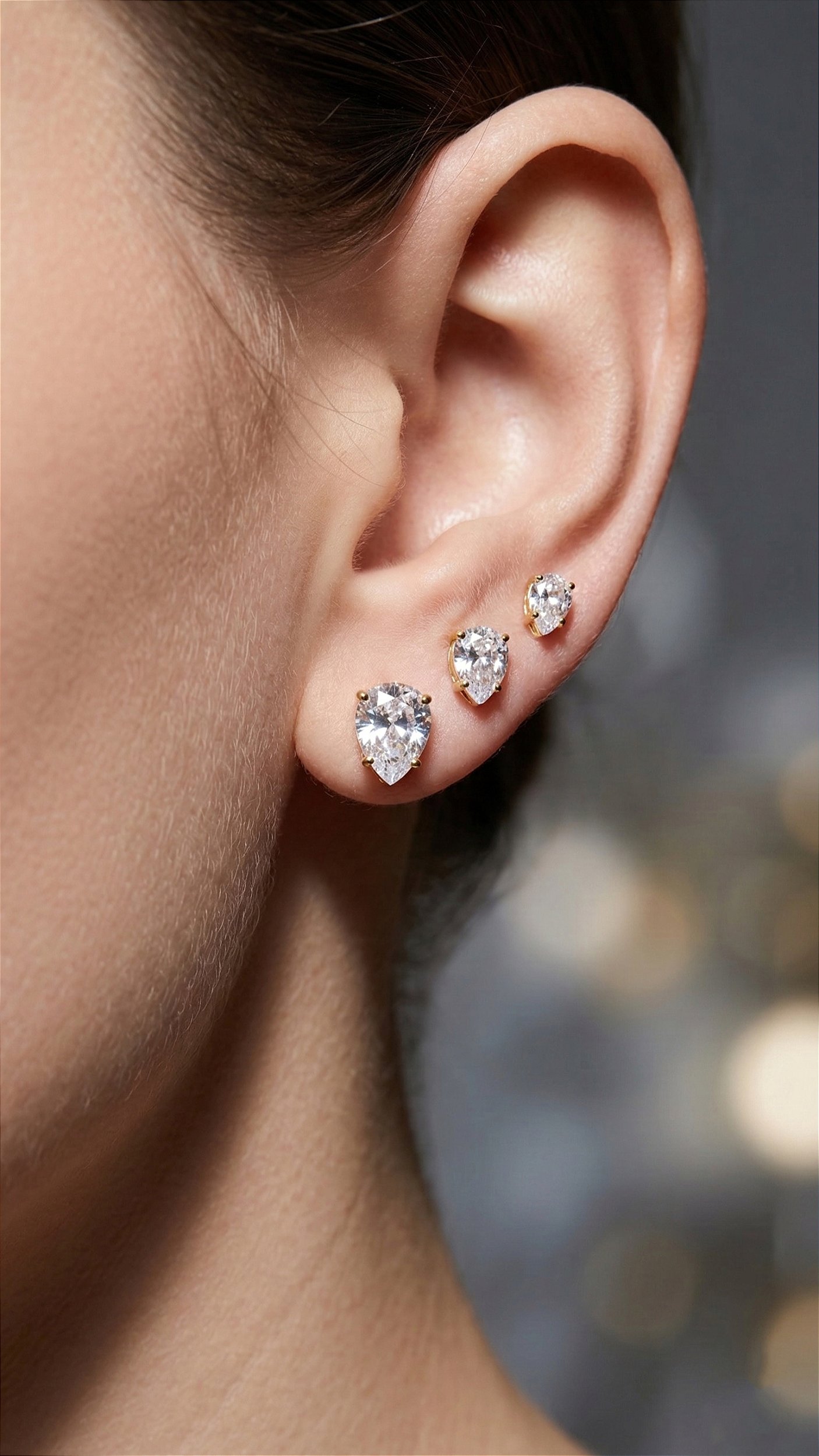 Brinco Trio Gota Chaton Zircônia Cravejado Dourado