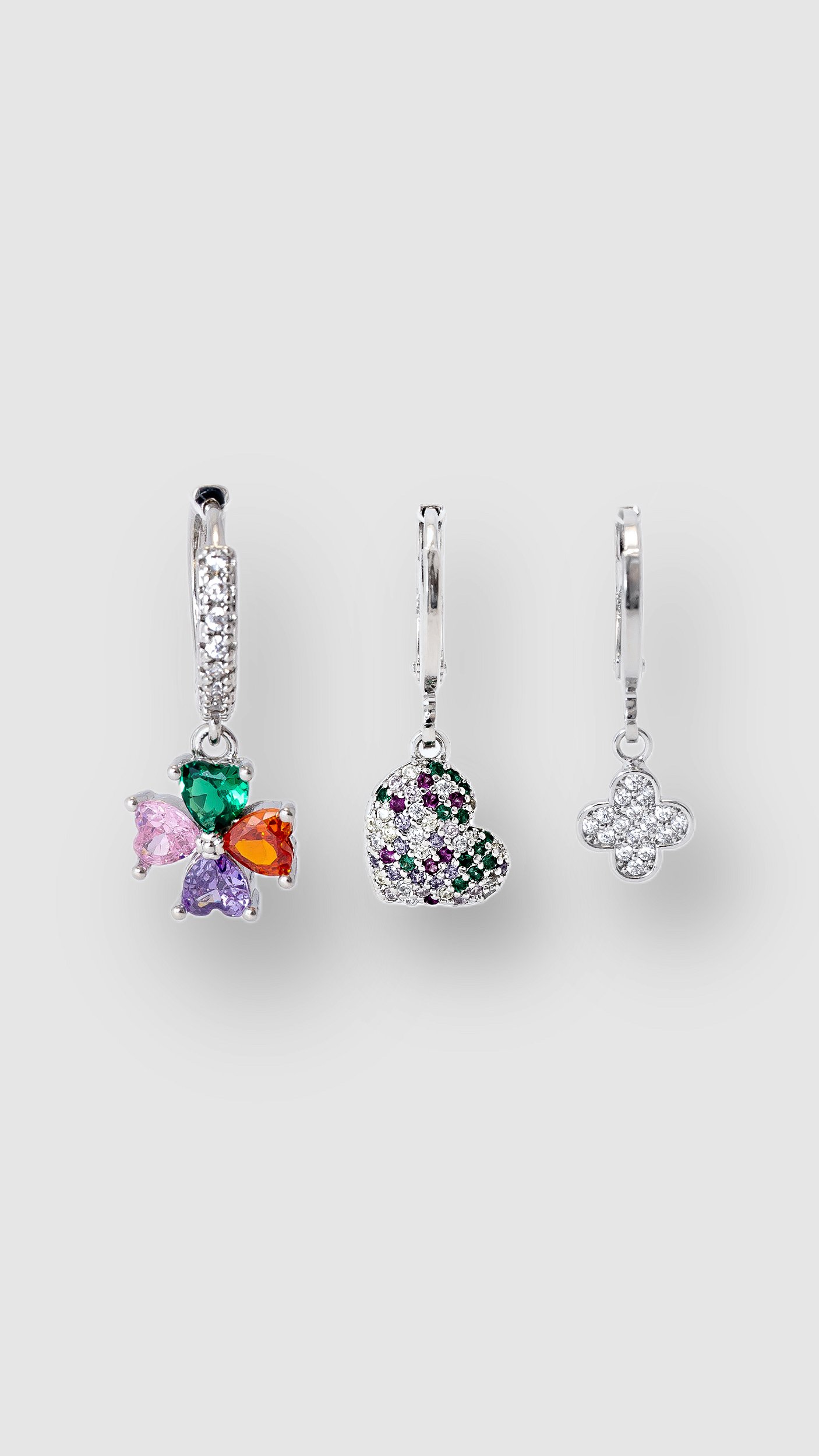 Brinco Trio Insp Pandora Zircônia Color Prata