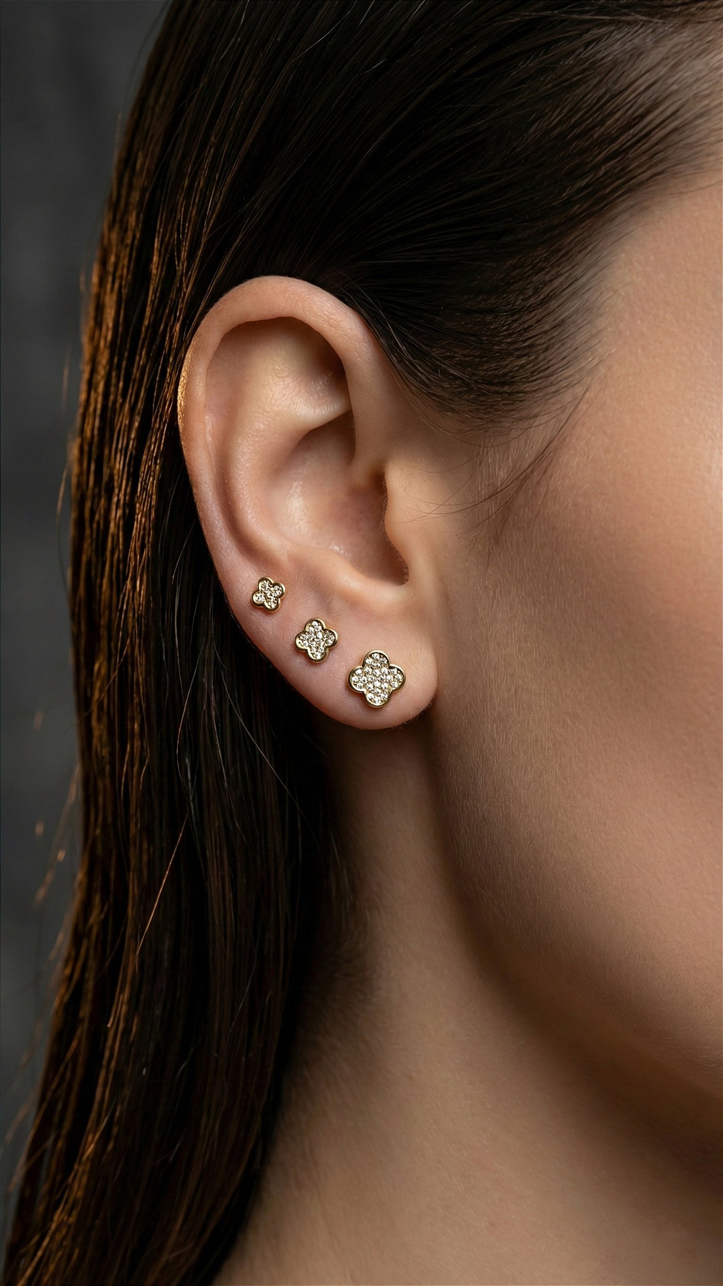 Brinco Trio Insp Van Cleef Mini Cravejado Dourado