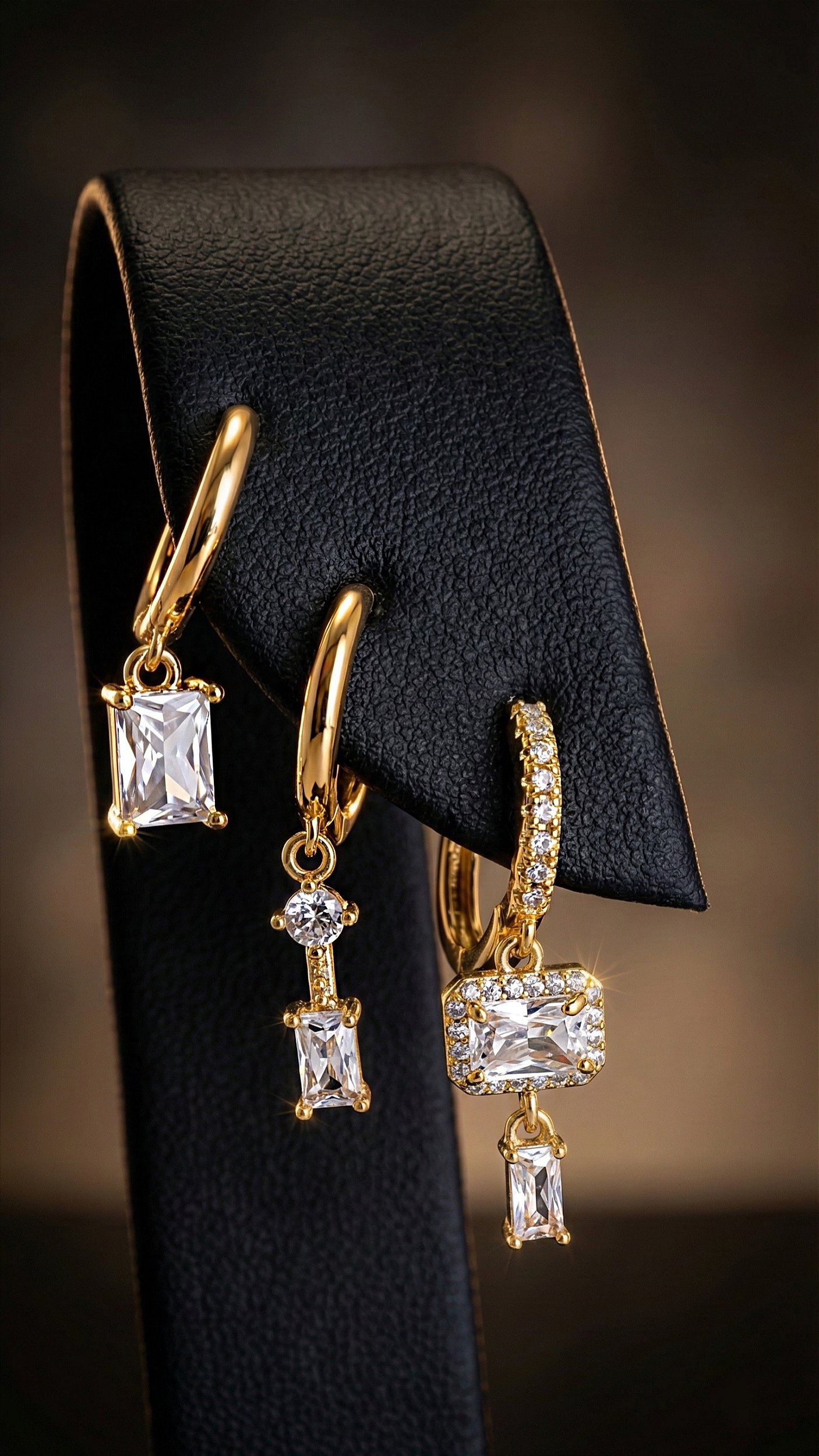 Brinco Trio Inspiração Pandora Zircônia Dourado