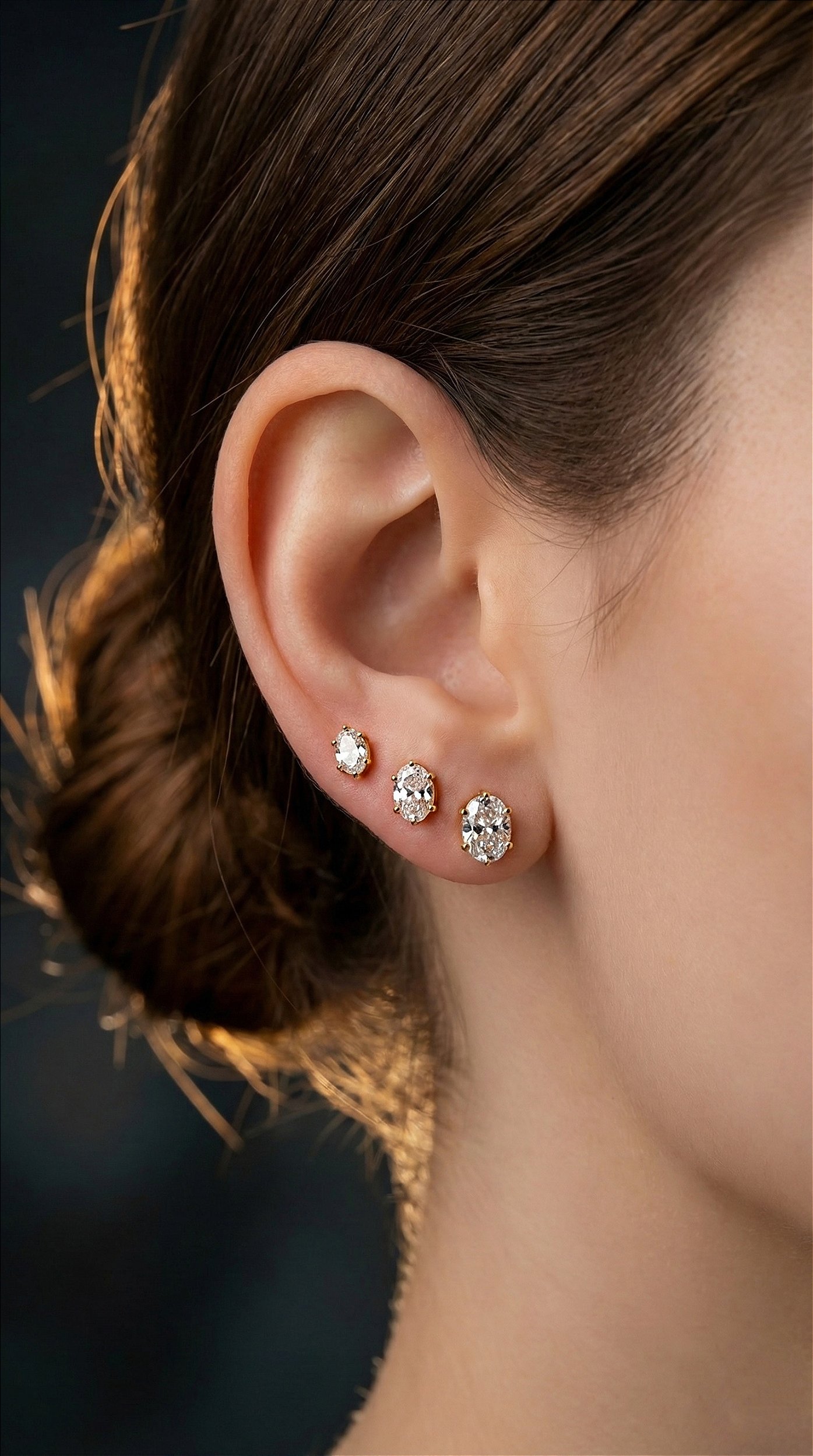 Brinco Trio Ponto de Luz Oval 6 Pontas Zircônia Dourado