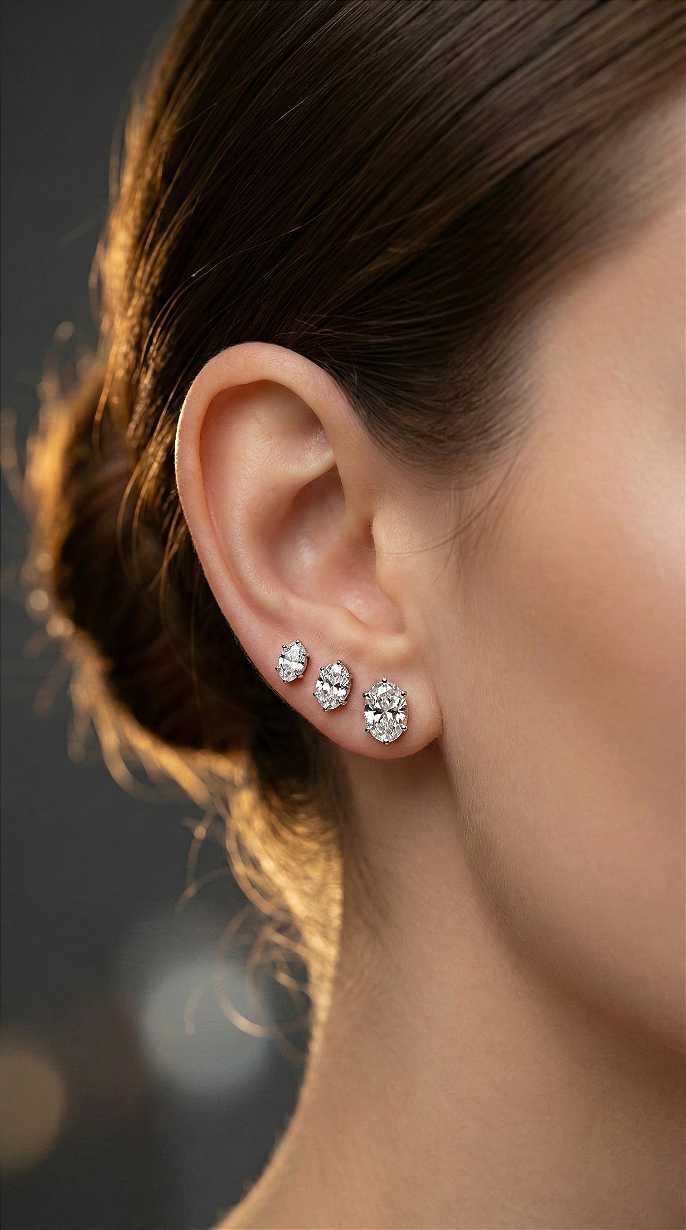 Brinco Trio Ponto de Luz Oval 6 Pontas Zircônia Prata