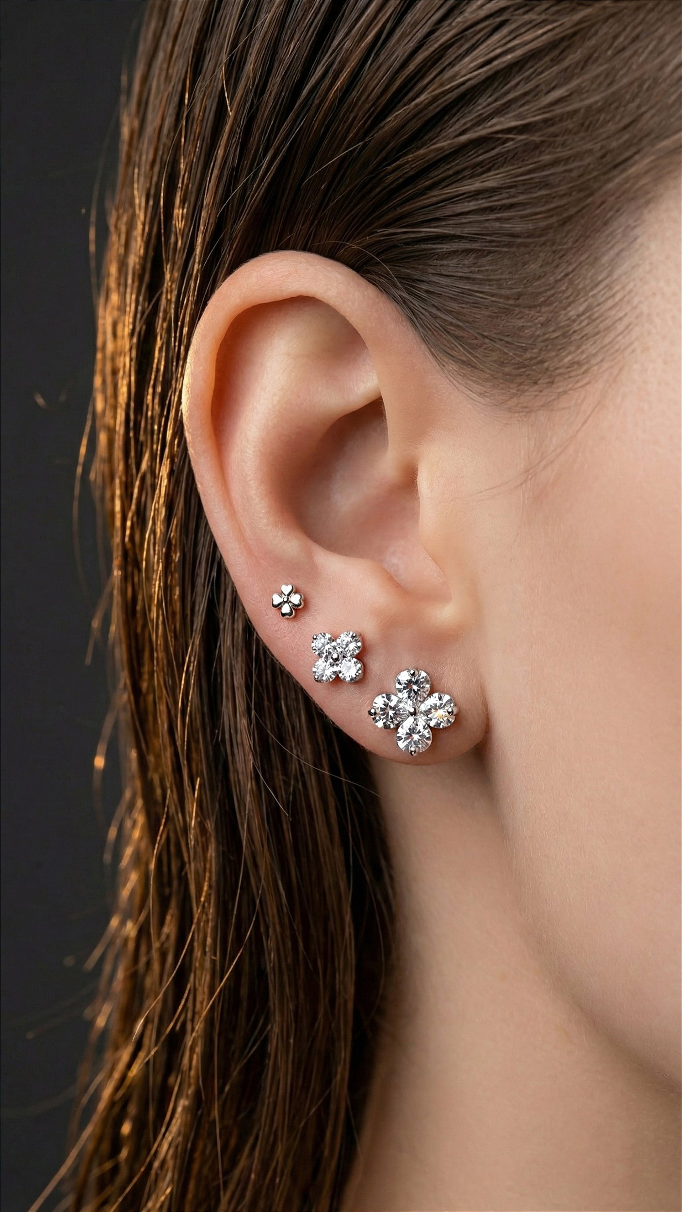 Brinco Trio Trevo Zircônia Cravejado Prata