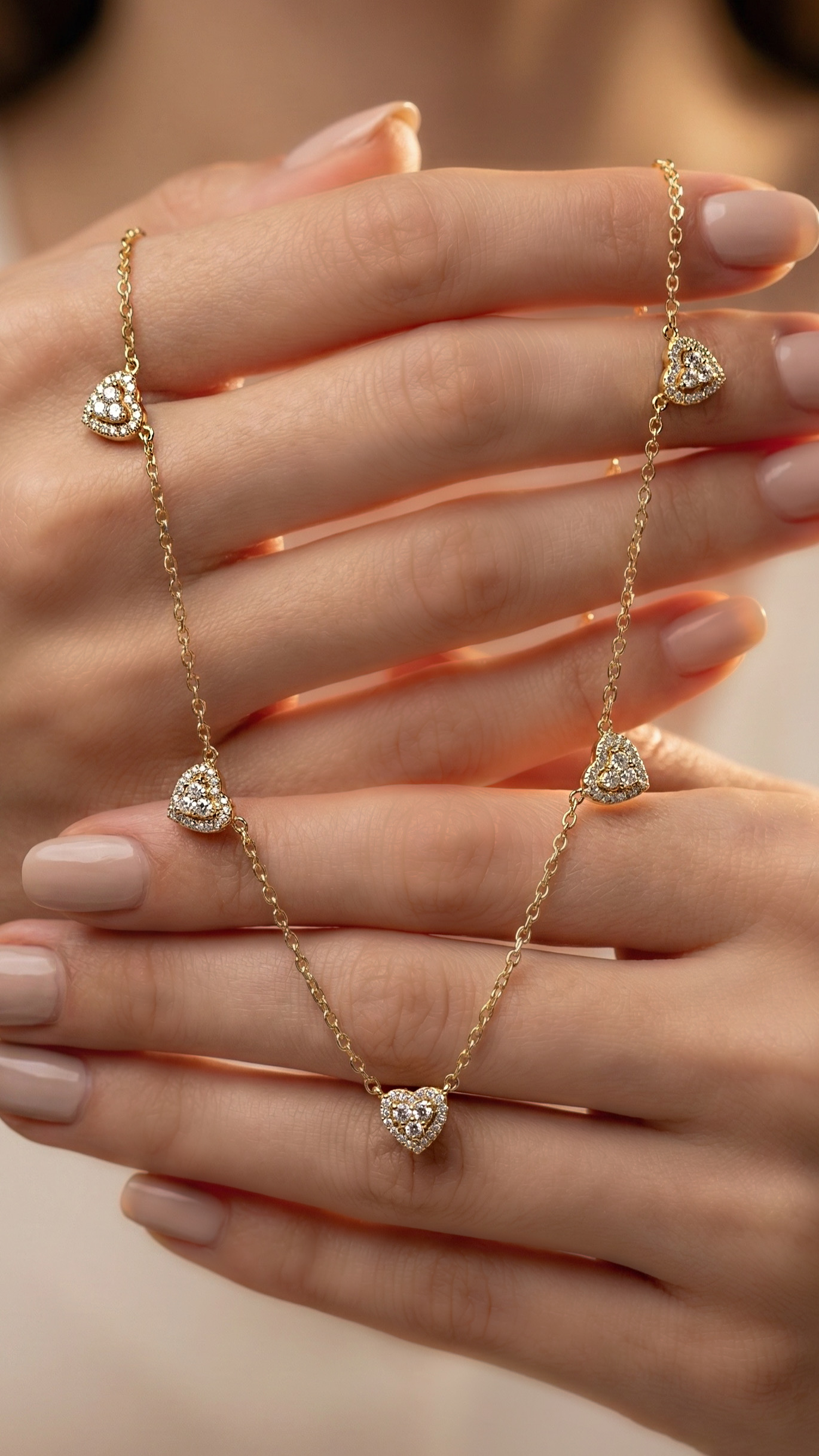 Colar Corações Zircônia Cristal Dourado