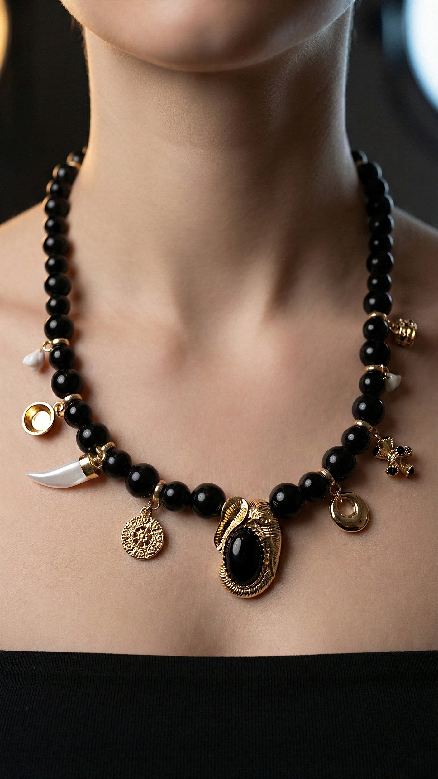 Além disso, a peça possuí esferas e pingente em resina preto, que trazem modernidade e sofisticação para o acessório! Inspiração das passarelas como Chloé, na By Olivia trazemos os acessórios mais atuais para elevar seus looks!