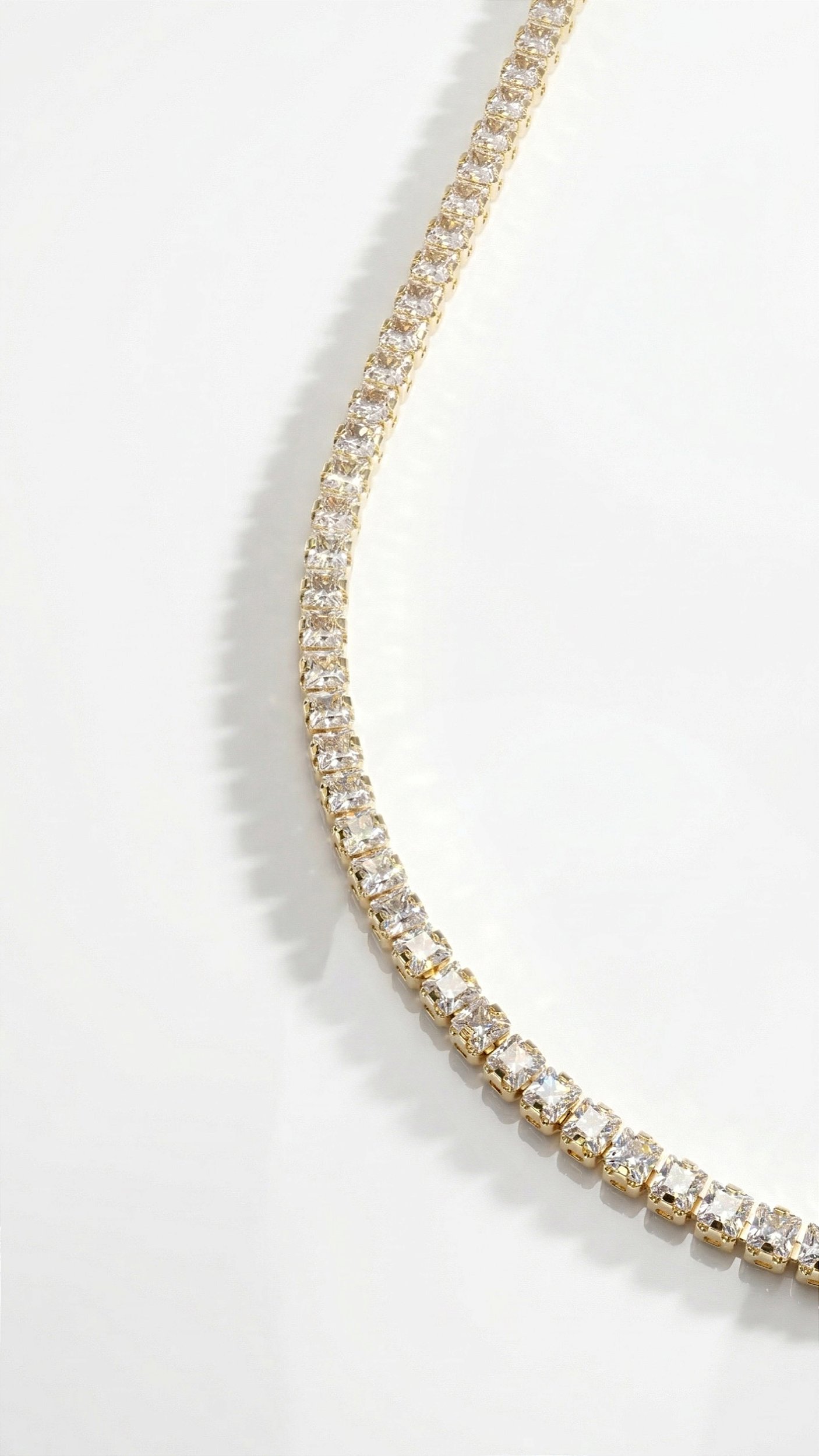 Colar Riviera 2 pontas 3mm Quadrada Zircônia Cristal Dourada