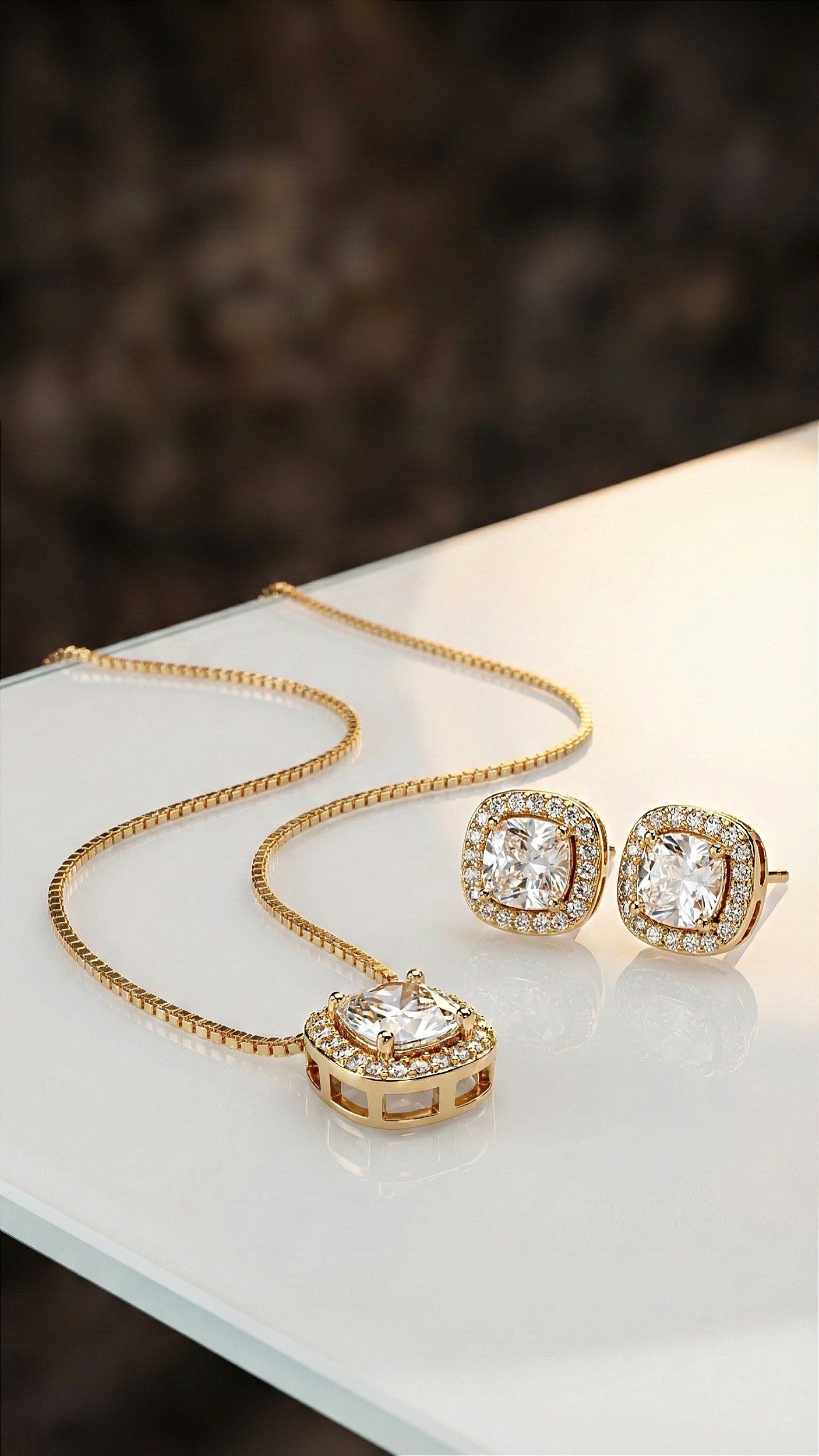 Conjunto Ponto de Luz Quadrado 4 Pontas Zircônia Dourado