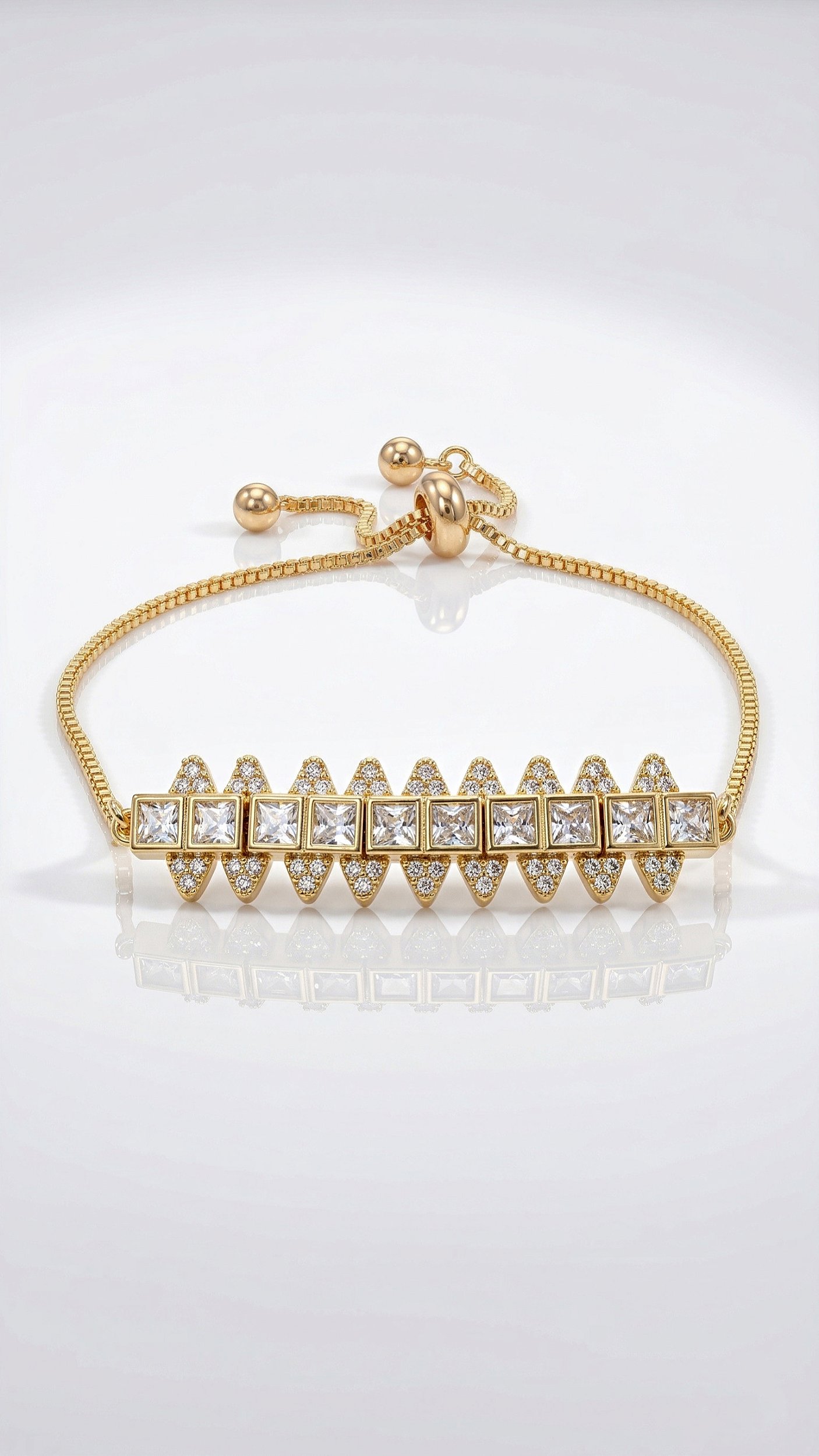 Pulseira Riviera Quadrada Zircônias Dourado Ajustável